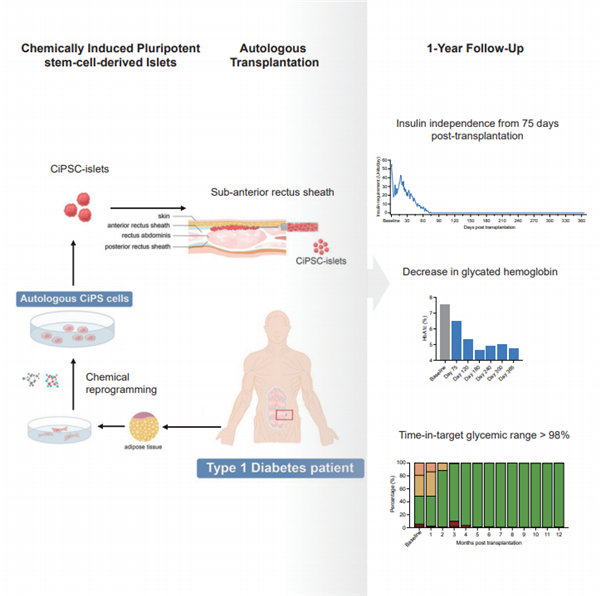 本研究利用人CiPS細(xì)胞制備的胰島,建立了糖尿病的細(xì)胞治療新途徑,實(shí)現(xiàn)了臨床功能性治愈糖尿病。更為重要的是,化學(xué)重編程技術(shù)制備的功能細(xì)胞在臨床治療疾病的成功,表明了化學(xué)重編程有望成為高效制備各種功能細(xì)胞類(lèi)型的通用底層技術(shù),為細(xì)胞治療在重大疾病治療上的廣泛應(yīng)用開(kāi)辟了一條新的途徑。
