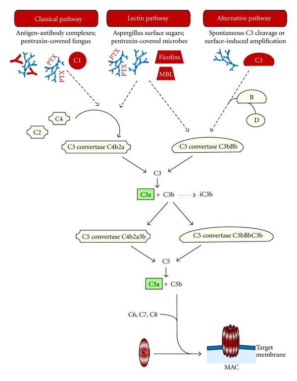 補(bǔ)體系統(tǒng)是免疫系統(tǒng)的重要組成部分,參與對(duì)病原的識(shí)別和防御,是機(jī)體針對(duì)致病性感染的首要防御系統(tǒng)。通過(guò)經(jīng)典途徑,凝集素途徑和替代途徑3條途徑激活補(bǔ)體,可選擇性識(shí)別外來(lái)病原和自身受損細(xì)胞,啟動(dòng)下游效應(yīng),從而在宿主的免疫防御過(guò)程中發(fā)揮重要作用。