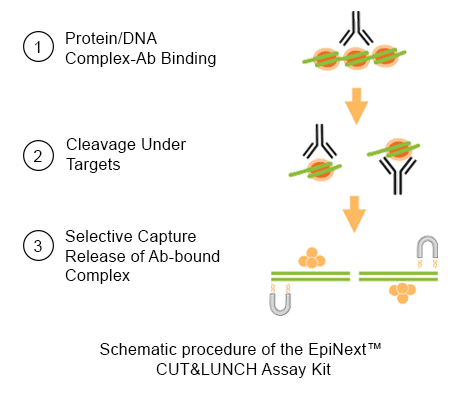 | 體內(nèi)蛋白 - DNA 相互作用 | CUT&LUNCH 技術(shù)(抗體靶向切割 + DNA 純化,比 ChIP 更高效) | EpiNext CUT&LUNCH Assay Kit | P-2035 | <2 小時(shí)完成富集;非特異性結(jié)合僅 3-5%(傳統(tǒng) ChIP 約 20%);成本為 ChIP 的 1/2;突破性新產(chǎn)品! | 精準(zhǔn)定位轉(zhuǎn)錄因子(如 p53)或組蛋白修飾(如 H3K4me3)的結(jié)合位點(diǎn) |
