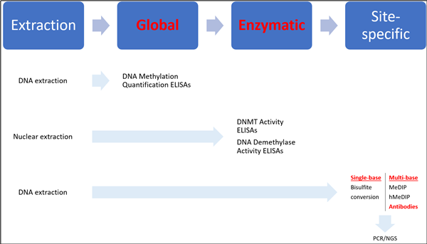 DNA甲基化酶聯(lián)免疫吸附測(cè)定(ELISA)提供了一種簡單、便捷且經(jīng)濟(jì)實(shí)惠的方法,用于快速評(píng)估特定甲基化DNA目標(biāo)的全球水平,然后再考慮采用上述更深入且成本更高的方法