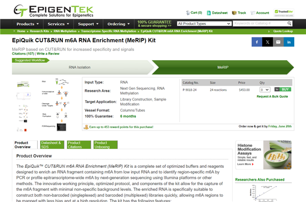 Epigentek品牌的EpiQuik CUT&RUN m6A RNA Enrichment (MeRIP) Kit,貨號(hào):P-9018 基于CUT&RUN的RNA免疫沉淀(MeRIP)可提高特異性和信號(hào)
