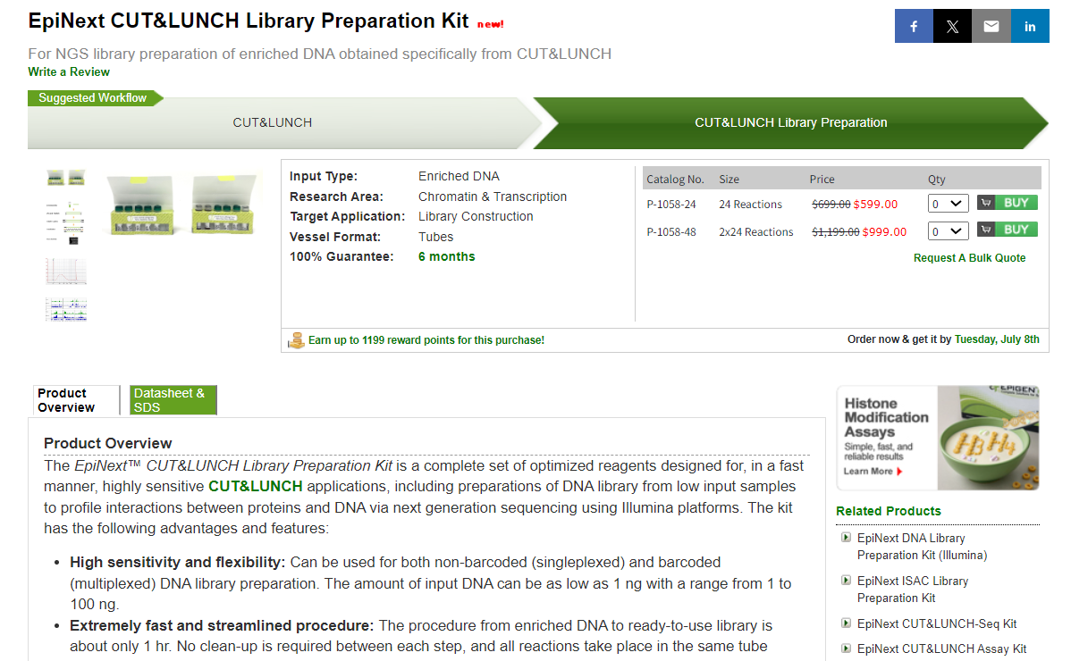 EpiNext CUT&LUNCH Assay Kit (P-2035-24)以突破性的技術(shù)革新,重新定義蛋白 - DNA 互作研究的 “黃金標(biāo)準(zhǔn)”——1 小時(shí) 50 分鐘完成從細(xì)胞到靶標(biāo)富集
