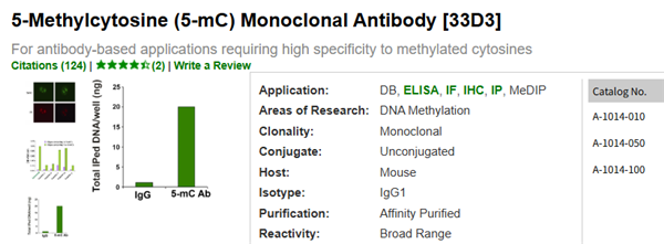 Epigentek的5-mC單克隆抗體[33D3](貨號(hào)A-1014)憑借其高特異性與廣泛適用性,為表觀遺傳學(xué)研究提供可靠工具。