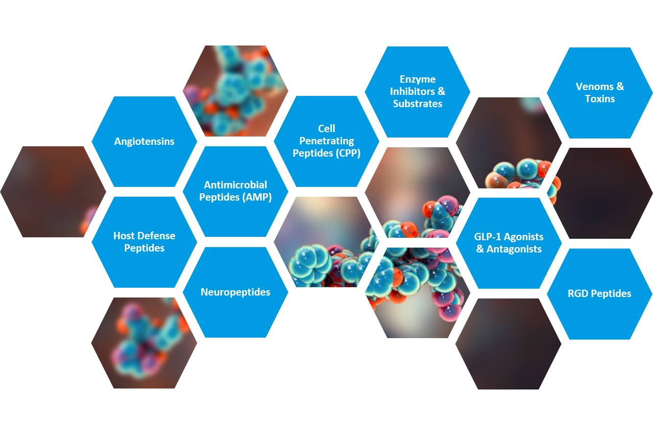 多肽在糖尿病研究、診斷和治療中具有重要意義。它們是胰腺和胃腸道肽激素的類似物,這些激素參與血糖控制。GLP-1及其類似物(如利拉魯肽和司美格魯肽)已被證明能夠刺激胰島素分泌,減少胰高血糖素分泌,并延緩胃排空,從而幫助調(diào)節(jié)血糖水平。這些胃腸道肽激素不僅在治療2型糖尿病方面非常有效,而且在體重管理方面也至關(guān)重要。這尤其重要,因為超過80%的2型糖尿病患者存在肥胖問題,而肥胖是糖尿病發(fā)病的重大風險因素。GLP-1肽有助于減輕體重,改善血糖控制,并降低與糖尿病和肥胖相關(guān)的心血管疾病風險。目前,雙重GLP-1/GIP受體激動劑正在被探索作為一種更先進的糖尿病和肥胖治療手段,旨在進一步增強胰島素分泌,降低糖尿病相關(guān)并發(fā)癥的風險。