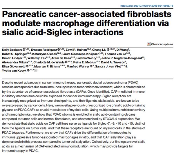 Lectenz品牌的SiaFind Pan-Specific Lectenz Kit(SK0501)被用于檢測(cè)PDAC患者組織樣本中的唾液酸表達(dá),顯示出在CAF區(qū)域的高表達(dá)水平,這為后續(xù)實(shí)驗(yàn)提供了關(guān)鍵線索。