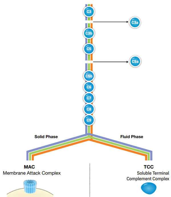 參與成分:除C3、C5、C6、C7、C8、C9外,還有B因子、D因子、P因子等。