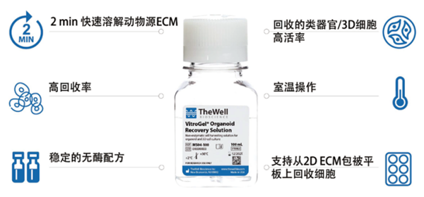 VitroGel類器官回收溶液:從動(dòng)物源細(xì)胞外基質(zhì)或從VitroGel水凝膠中回收培養(yǎng)的類器官/細(xì)胞。