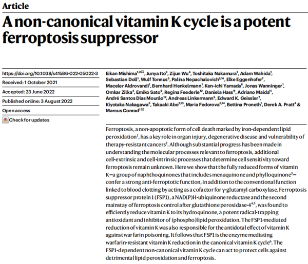 作為鐵死亡誘導(dǎo)劑,F(xiàn)INO2為研究鐵死亡機(jī)制及開發(fā)相關(guān)抑制劑提供了重要工具。通過與不同形式的維生素K及其衍生物聯(lián)合使用,可以進(jìn)一步揭示維生素K在鐵死亡中的作用機(jī)制及潛在的治療應(yīng)用。
