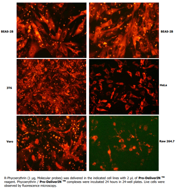 | PI10250 | PRO-DELIVERIN 250 TRANSFECTION REAGENT+ R-Phycoerythrin | 蛋白質(zhì)輸送系統(tǒng),功能活性蛋白的細(xì)胞內(nèi)遞送 | 原代細(xì)胞和細(xì)胞系 |
