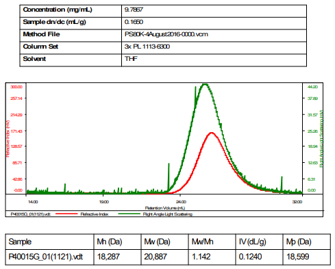 樣品名稱:Bromo封端聚(甲基丙烯酸甲酯-苯乙烯)二嵌段共聚物(陰離子過程和受控自由基工藝)聚甲基丙烯酸甲酯:富含等規(guī)