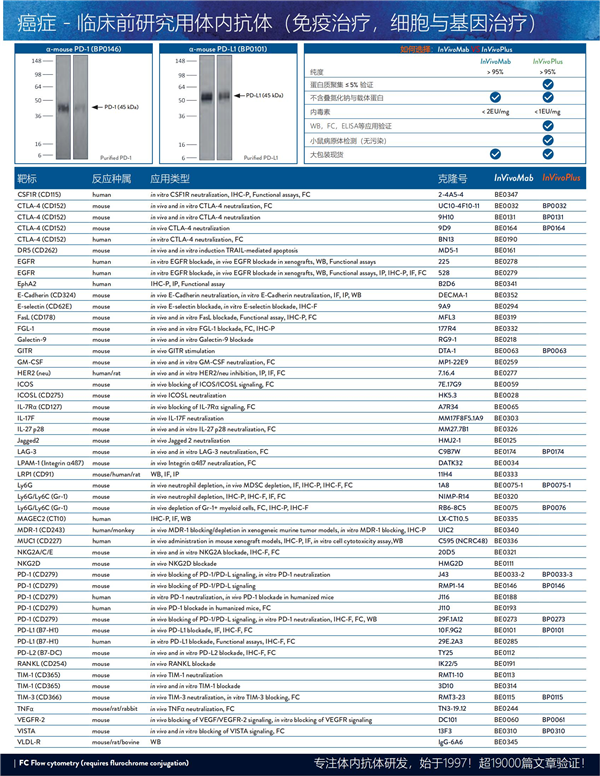 | 體內(nèi)封閉PD-1/PD-L信號(hào)傳導(dǎo) 體外 PD-1 中和 WB | J43 | BE0033-2 | BP0033-2 | |