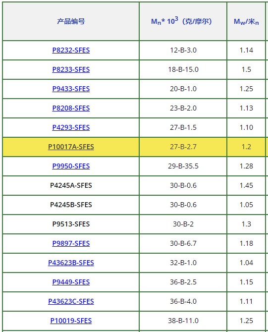 聚(苯乙烯)-b-聚(ferrocenyl di甲基 silane)部分產(chǎn)品: