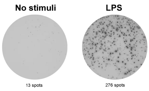 本ELISpot Plus試劑盒用于通過ELISpot檢測法計數分泌小鼠腫瘤壞死因子α(TNF-α)的細胞。