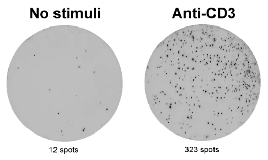 ELISpot Plus試劑盒用于通過ELISpot檢測法計數分泌小鼠干擾素γ(IFN-γ)的細胞。