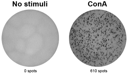 本ELISpot Plus試劑盒用于通過ELISpot檢測法計數分泌大鼠干擾素γ(IFN-γ)的細胞