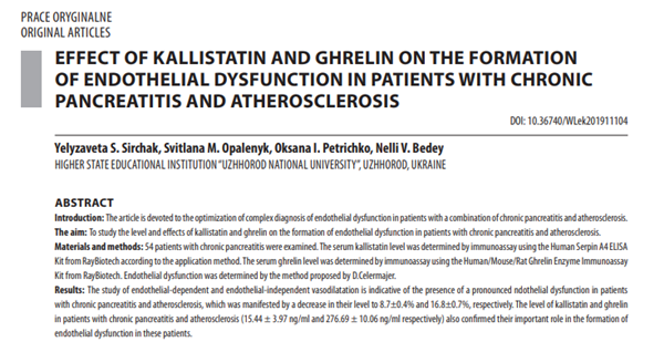 本研究旨在探討卡利斯塔汀和饑餓素在慢性胰腺炎和動脈粥樣硬化患者內皮功能障礙形成中的水平和作用。