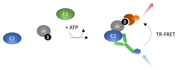 UbcH5c TR-FRET檢測試劑盒是一種均勻、靈敏的TR-FRET(時間分辨熒光共振能量轉移)檢測試劑盒,旨在測量UbcH5b(泛素結合酶E2 D3)泛素化活性