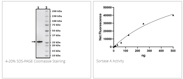 Sortase A五突變體展現出比野生型蛋白更高的活性。這種反應適用于溶液中的蛋白質以及活細胞表面的蛋白質。
