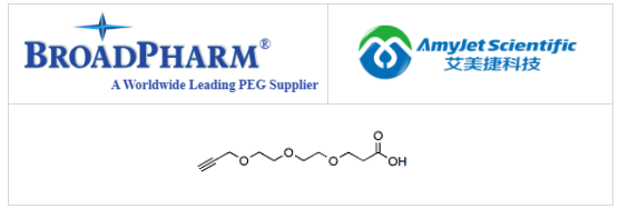 BroadPharm/炔丙基-PEG3-酸是一種具有炔烴基和羧酸的試劑。末端羧酸可以與伯胺形成酰胺鍵(需要活化)。