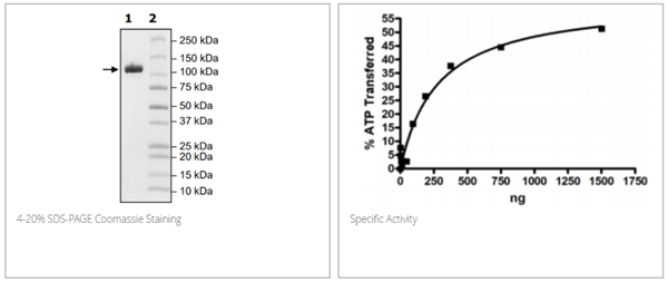 人泛素活化酶(E1)(Ube1),又稱UBA1,基因庫加入號。N_003334,A.2-1058(端),帶N端標記,表達在受桿菌病毒感染的SF9細胞表達系統中,mw=119kda。