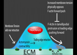 細(xì)胞膜張力調(diào)節(jié)許多細(xì)胞過程,如胞吞,胞吐,分裂和細(xì)胞運(yùn)動(dòng),所有這些過程都需要重塑細(xì)胞形態(tài),而這反過來又依賴于細(xì)胞膜變形和肌動(dòng)蛋白細(xì)胞骨架重塑之間的相互作用, 本通訊主要討論細(xì)胞運(yùn)動(dòng)相關(guān)的形態(tài)發(fā)生過程中Actin細(xì)胞骨架與膜張力之間的協(xié)同作用。