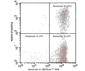 Annexin V- AbFluor™ 488 細胞凋亡檢測試劑盒和碘化丙啶(PI)對細胞進行染色可以區(qū)分完整細胞,早期凋亡和晚期凋亡或壞死細胞。