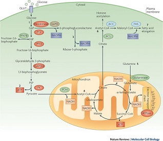 丙酮酸鹽在糖酵解等過程中有重要作用: 它可以在細(xì)胞溶質(zhì)葡萄糖進(jìn)行糖酵解的過程中,由磷酸烯醇式丙酮酸產(chǎn)生。丙酮酸鹽可以繼續(xù)進(jìn)入檸檬酸循環(huán)繼續(xù)氧化分解,轉(zhuǎn)化為