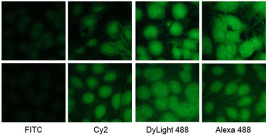 DyLigh™系列熒光標(biāo)記是一種近年來被廣泛應(yīng)用的新型熒光染料,由于具有很好的光譜寬度、更強(qiáng)的熒光強(qiáng)度,更高的光學(xué)耐受性(抗淬滅性)、對pH不敏感、分子較小而滲透