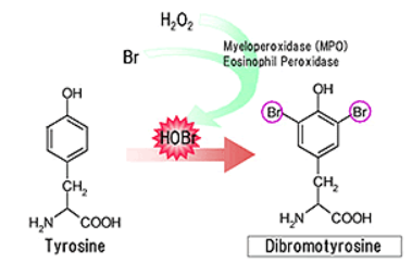 抗二溴酪氨酸(DiBrY)單克隆抗體是一種針對(duì)3,5-二溴酪氨酸的特異性抗體。二溴酪氨酸(DiBrY)是由中性粒細(xì)胞和嗜酸性粒細(xì)胞中的髓過(guò)氧化物酶(MPO)和嗜酸性粒細(xì)胞過(guò)氧化物酶(EPO)催化形