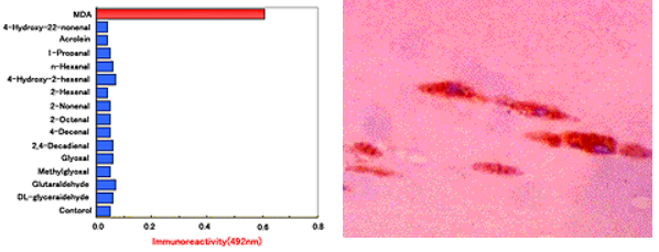丙二醛(MDA)是脂質(zhì)過氧化產(chǎn)生的一種主要醛類。MDA是一種高反應(yīng)性的醛,能夠與蛋白質(zhì)中的賴氨酸殘基發(fā)生反應(yīng)。MDA與賴氨酸殘基的反應(yīng)會(huì)形成許多加合物,例如二氫吡啶賴氨酸(DHP-賴