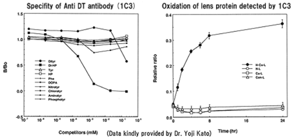 酪氨酸是蛋白質(zhì)氧化的主要靶點(diǎn)之一,迄今為止,根據(jù)自由基的類型,已經(jīng)發(fā)現(xiàn)了各種酪氨酸衍生物,如硝酪氨酸、二酪氨酸和鹵代酪氨酸。二酪氨酸(DT)是一種由酪氨酸自由基衍生的二聚體,這