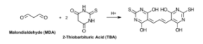 MDA通過硫代巴比妥酸在酸性環(huán)境中的反應(yīng)根據(jù)以下反應(yīng)方便地測量。