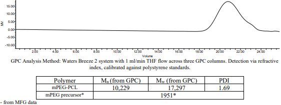 mPEG-PCL / 甲氧基聚(乙二醇)-b-聚(己內(nèi)酯),(Mw ~2,000:5,200 Da)圖例: