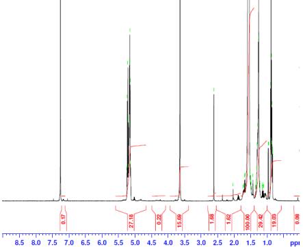 共聚物在CDCl3(Bruker 500MHz,PLA-PEG共聚物的PINMRF)NMR:EG/LA=109*/755(Mn例如:GA 4802*/54341) |