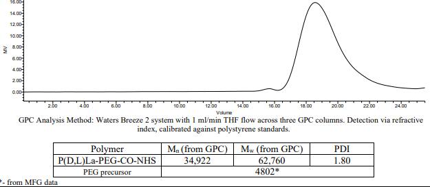 英文名字:PDLLA-PEG-COONHS / Poly(D,L-lactide)-b-poly(ethylene glycol)-COONHS, (55,000:5,000 Da)