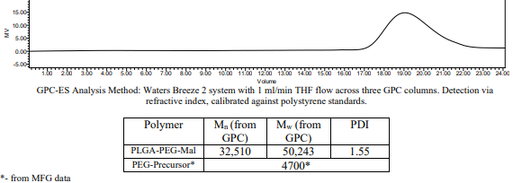 PLGA PEG-Mal/聚(丙交酯-乙交酯)-b-聚(乙二醇)-馬來酰亞胺,(Mw~300000-5000Da,LA:GA 50:50)圖例: