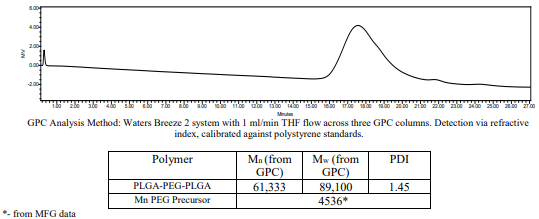PLGA-PEG-PLGA / 聚(丙交酯-共-乙交酯)-b-聚(乙二醇)-b-聚(丙交酯-共-乙交酯),(Mw ~70,000:4,600:70,000 Da) LA:GA 50:50圖例: