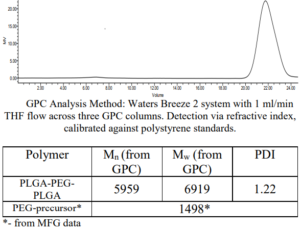 英文名字:PLGA-PEG-PLGA / Poly(lactide-co-glycolide)-b-poly(ethylene glycol)-b-poly(lactide-co-glycolide), (Mw ~1,500:1,500:1,500 Da) LA:GA 50:50