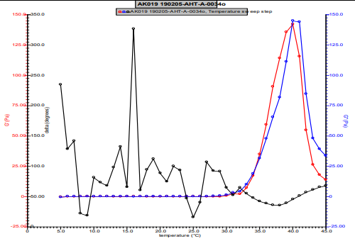 在60毫米2°的AR2000(TA儀器)上進(jìn)行流變學(xué)在攪拌下在溶解于水中的20%w/v聚合物上錐形3天4°C。溶液在0.1(秒-1)時(shí)的粘度)并測(cè)量5°C(1分鐘峰值保持5秒測(cè)試間隔)。通過(guò)振蕩進(jìn)行的流變學(xué)常數(shù)6.283 rad/s,0.1%應(yīng)變,增量為1°C,范圍為5-45°C在每個(gè)點(diǎn)進(jìn)行1分鐘的溫度平衡 |
