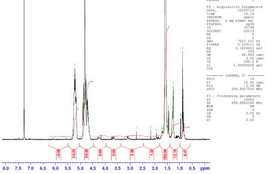 共聚物在CDCl3(Bruker≥300MHz,PINMRF)PLGA共聚物的NMR:LA-GA=50%-50%摩爾比例(LA:GA 55%:45%w/w) |