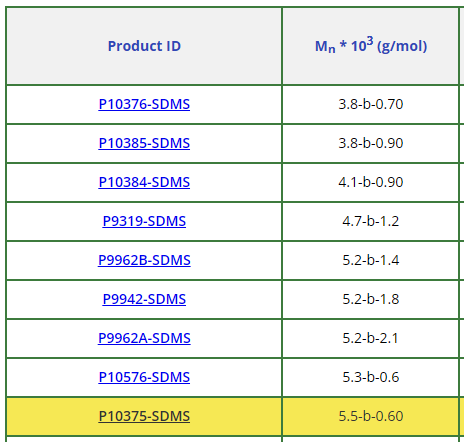 | 聚(苯乙烯)-b-聚(二甲基硅氧烷), ω-tri甲基silyl-terminated | PMS-P10375-SDMS-500mg | 查看 |