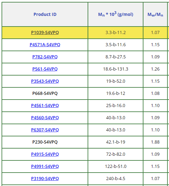 | 聚(苯乙烯)-b-聚(4-乙烯基吡啶, quaternized with 甲基 iodide) | PMS-P1039-S4VPQ-500mg | 查看 |