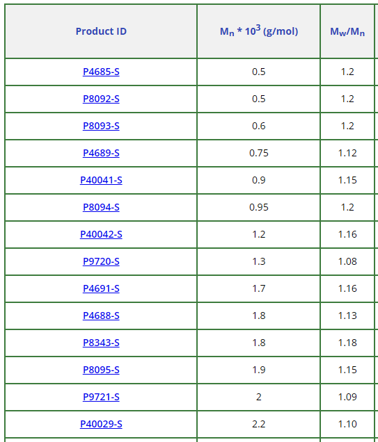 | 聚(苯乙烯), atactic; narrow dispersity (Mw/Mn<1.2) | PMS-P10447-S-500mg | 查看 |