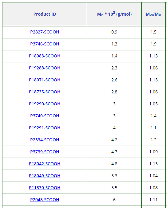 聚(苯乙烯), ω-carboxy-terminated產(chǎn)品: