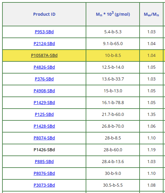 聚(苯乙烯)-b-聚(1,4-丁二烯)產(chǎn)品: