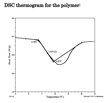 對樣品進行了熱分析使用差示掃描量熱計(TAQ100),加熱速率為10oC/分鐘。拐點樣品的玻璃化轉(zhuǎn)變溫度(Tg)已被考慮。 溶解度: 聚合物可溶于THF、CHCl3和甲苯。