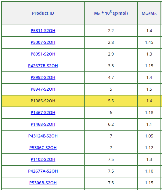 | 聚(苯乙烯), α,ω-二甲烷-terminated, with α-甲基苯乙烯 dimer in center of 聚mer chain | PMS-P1085-S2OH-500mg | 查看 |