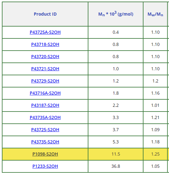 | 聚(苯乙烯), α,ω-二甲烷-terminated, with dialkyl-benzene group in center of 聚mer chain | PMS-P1098-S2OH-500mg | 查看 |