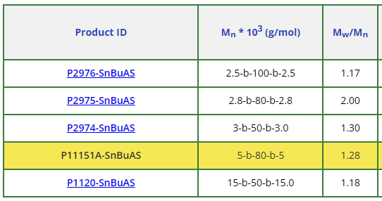 聚(苯乙烯)-b-聚(n-butyl 丙烯酸酯)-b-聚(苯乙烯)產(chǎn)品: