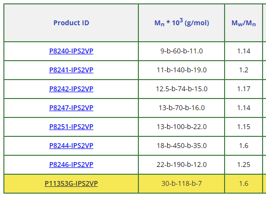 聚(1,4-異戊二烯)-b-聚(苯乙烯)-b-聚(2-乙烯基吡啶)產(chǎn)品:
